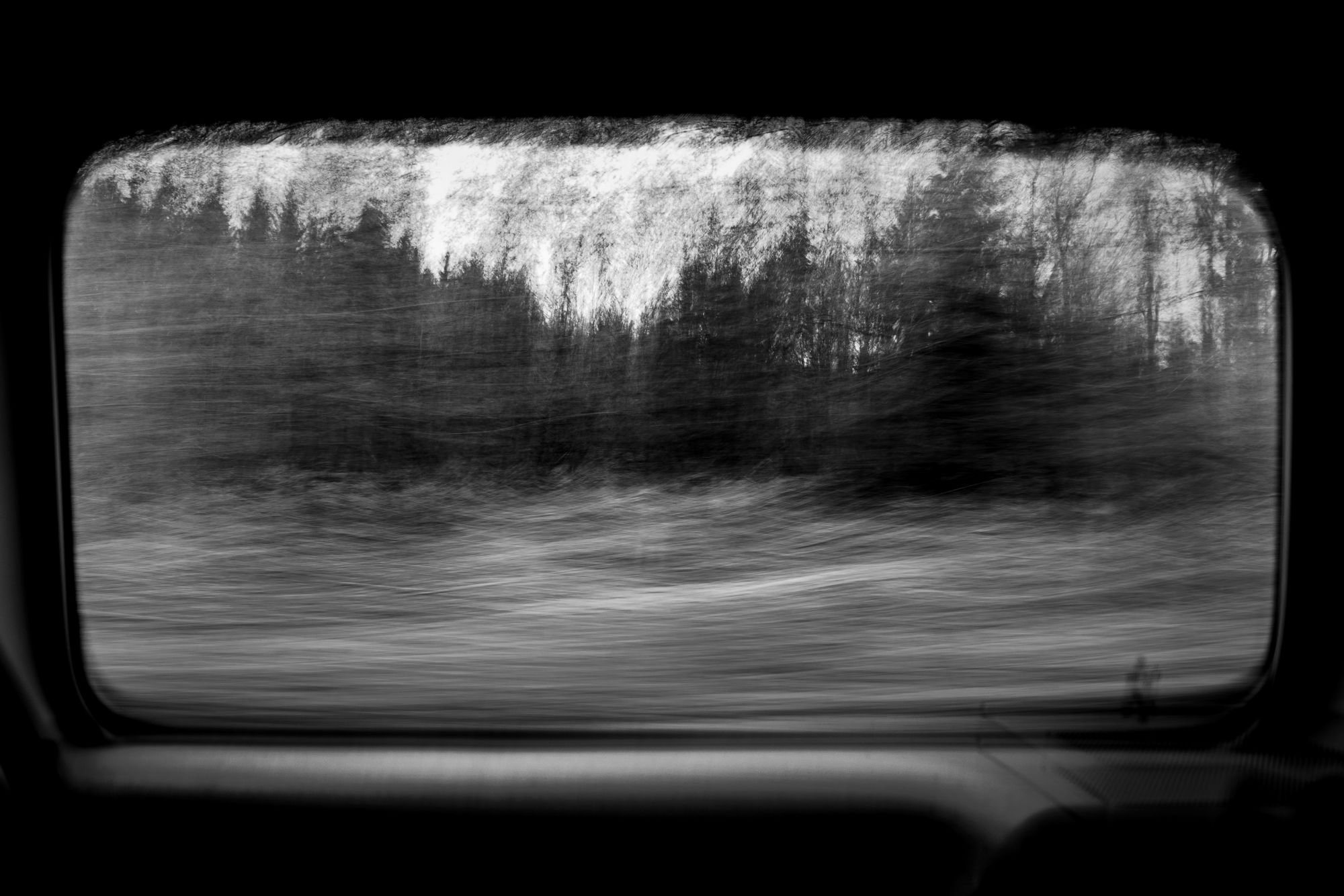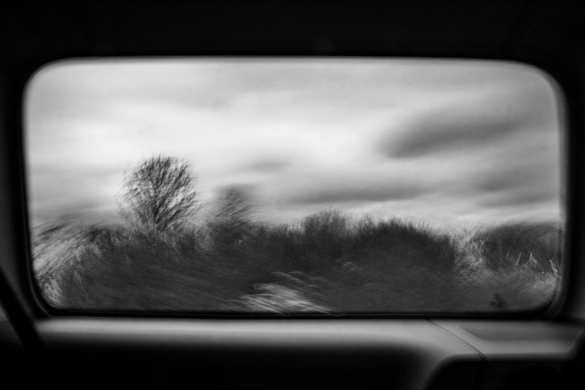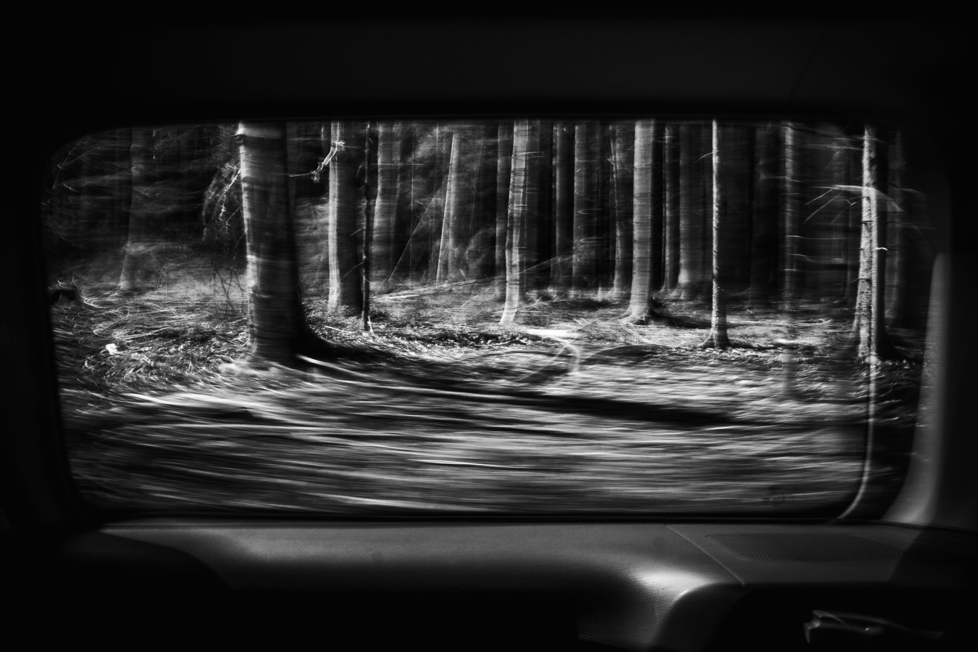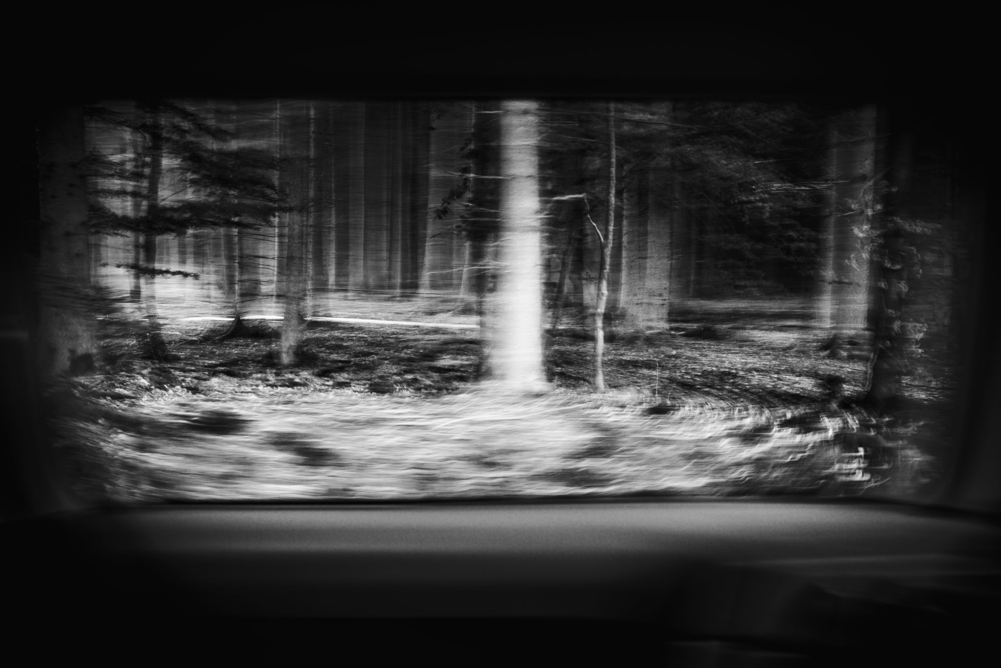 A subseries of the Rear Seat Diaries – one of many variations and developments within the project. It is created when the light is soft enough to allow longer exposure times. While the car is moving, I hold the camera in my hand and make minimal movements. These subtle shifts create a controlled blur – lines dissolve, structures flow.