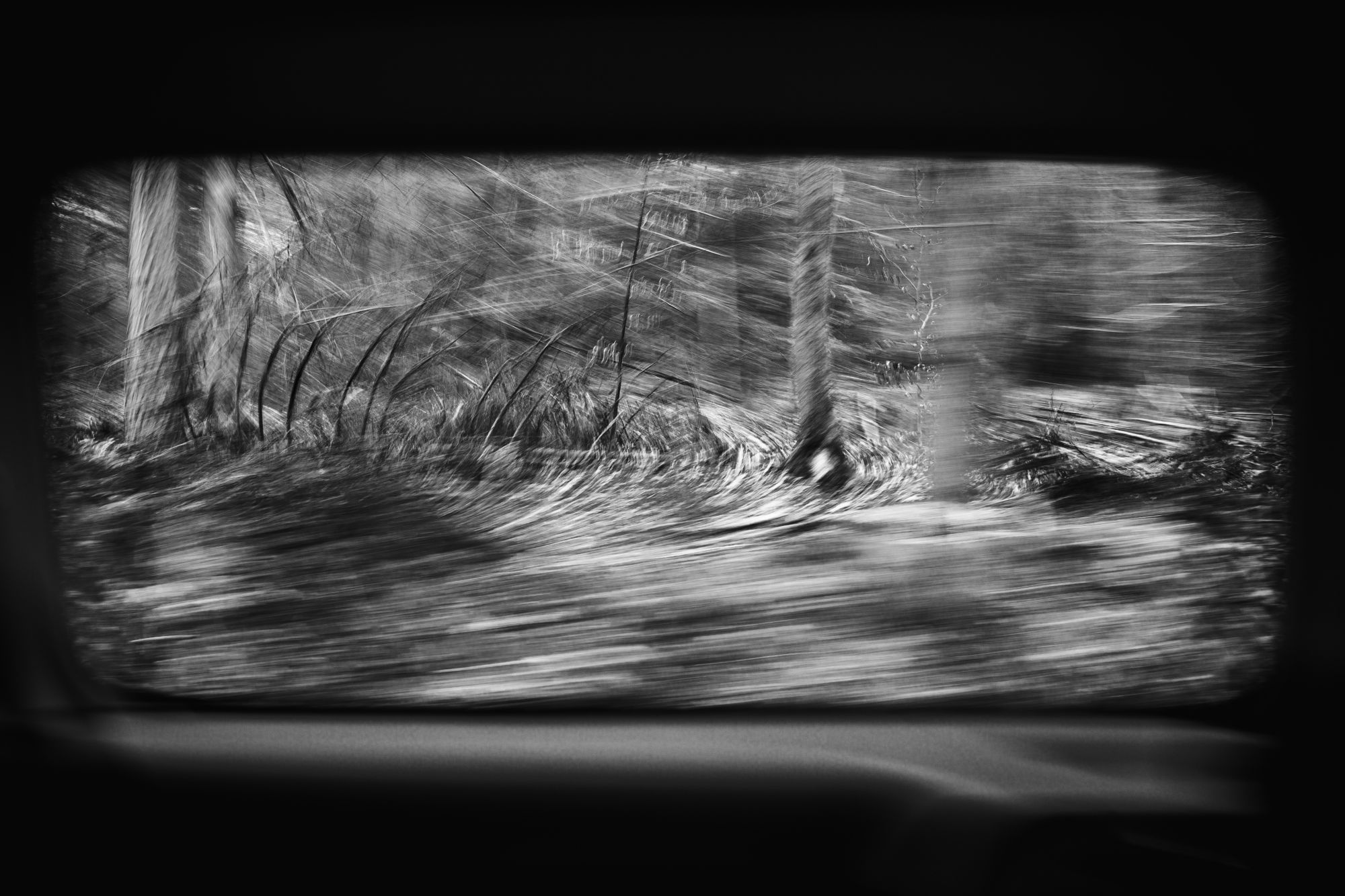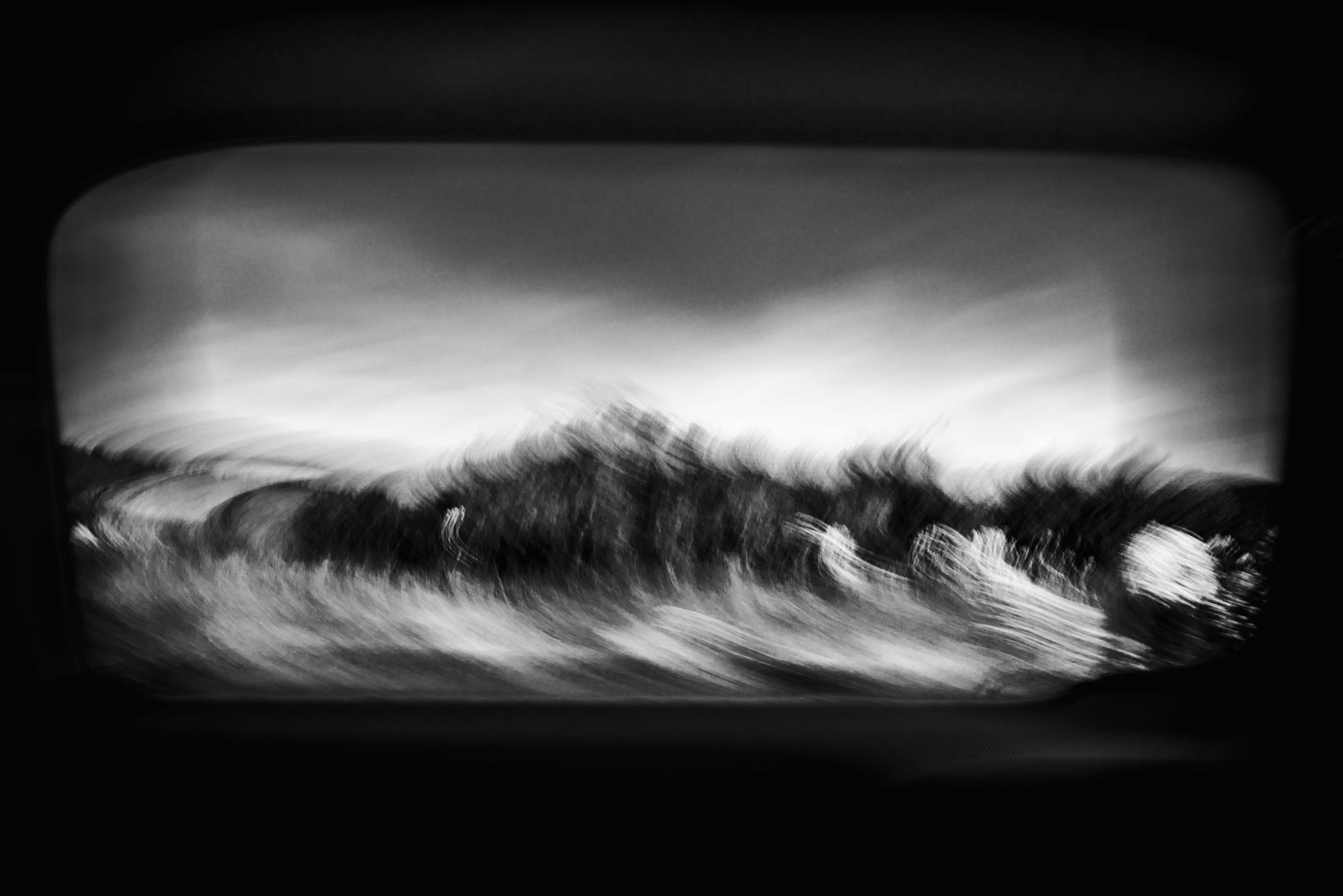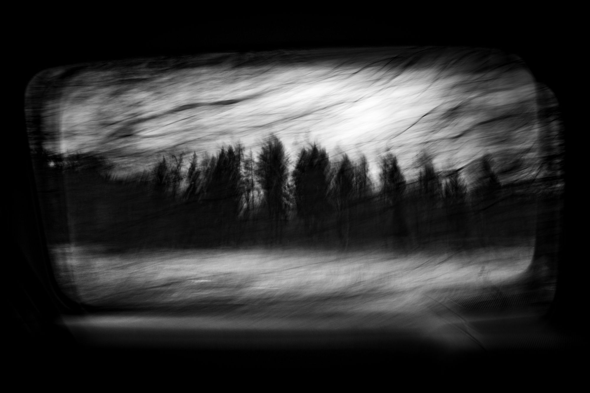 A subseries of the Rear Seat Diaries – one of many variations and developments within the project. It is created when the light is soft enough to allow longer exposure times. While the car is moving, I hold the camera in my hand and make minimal movements. These subtle shifts create a controlled blur – lines dissolve, structures flow.
