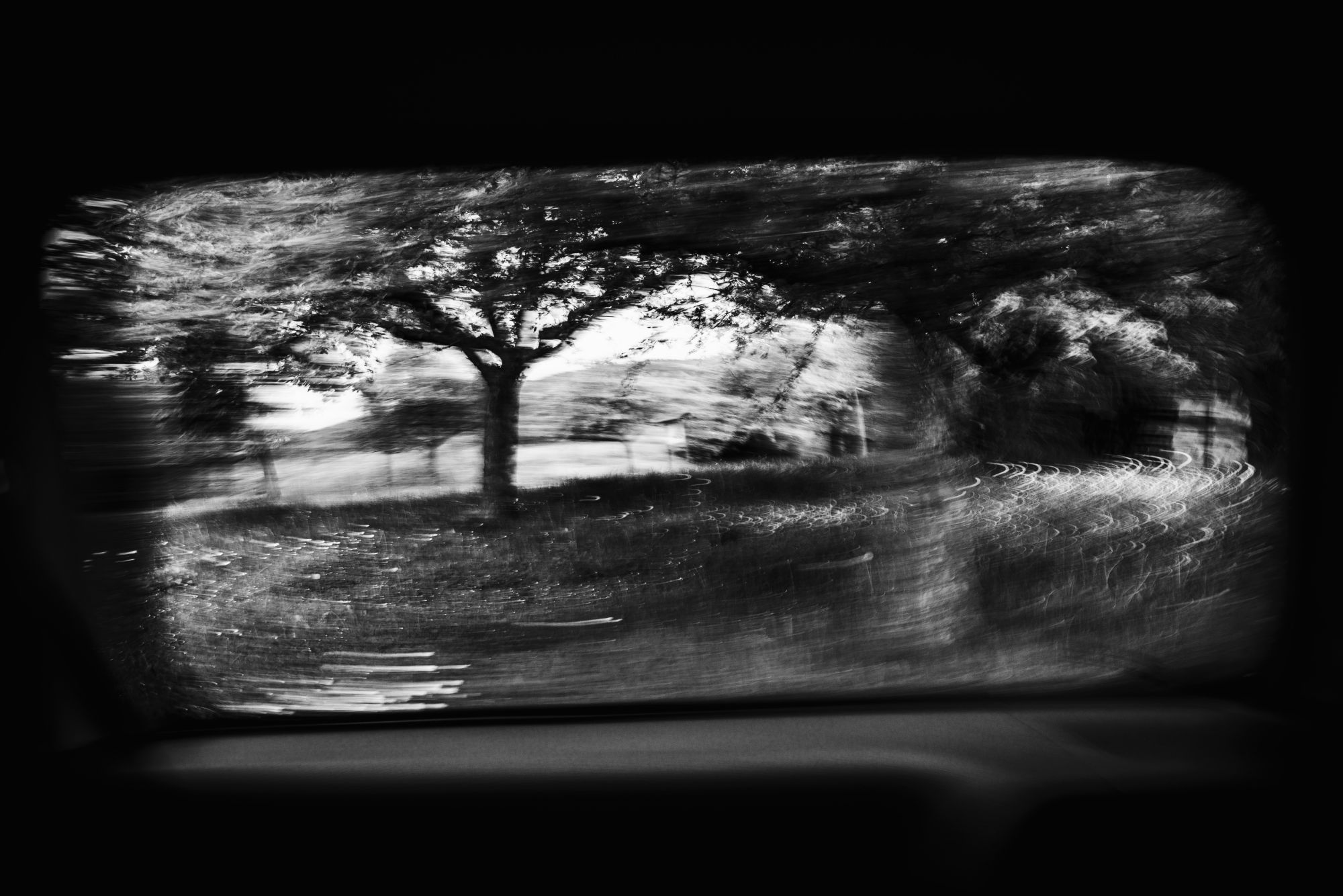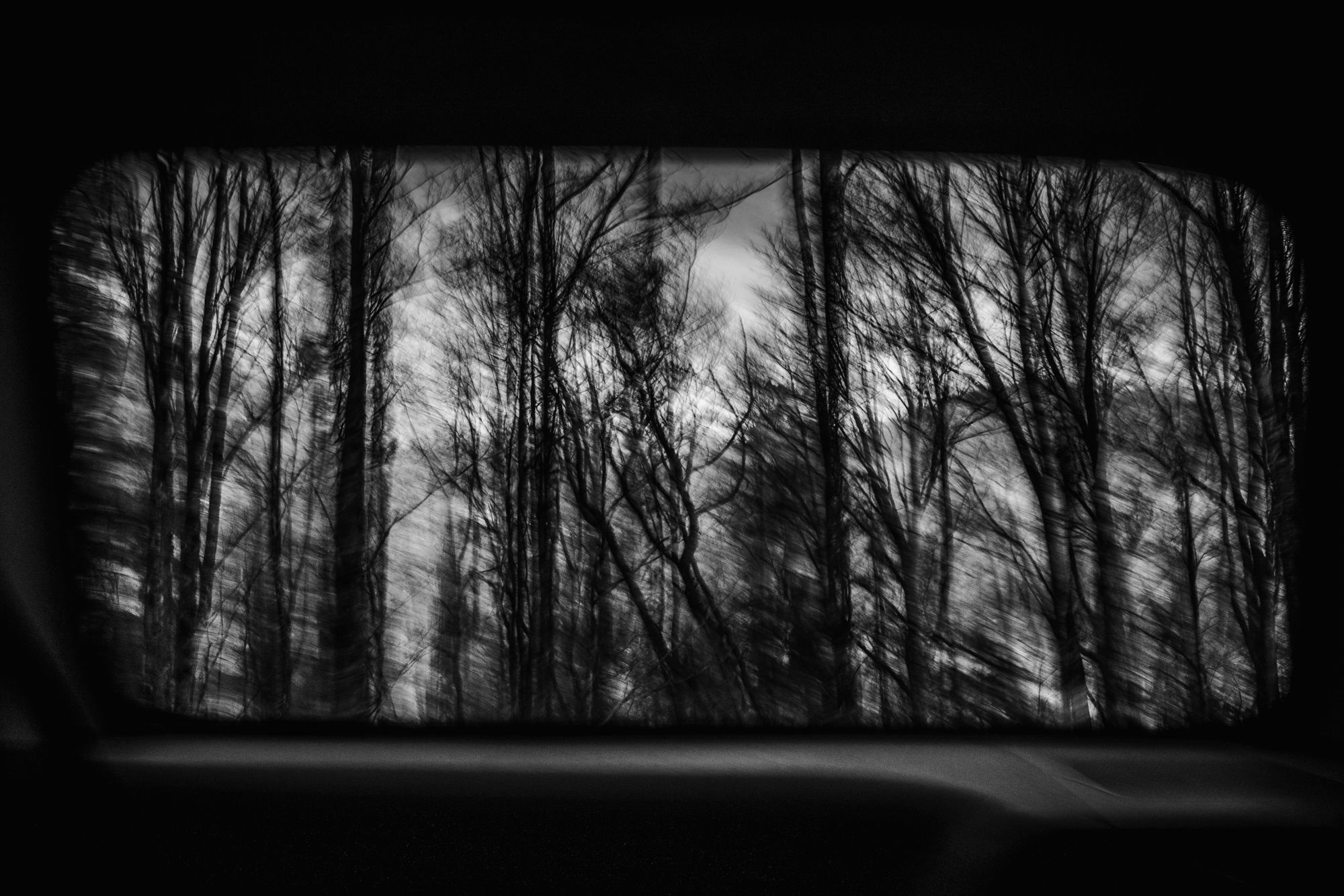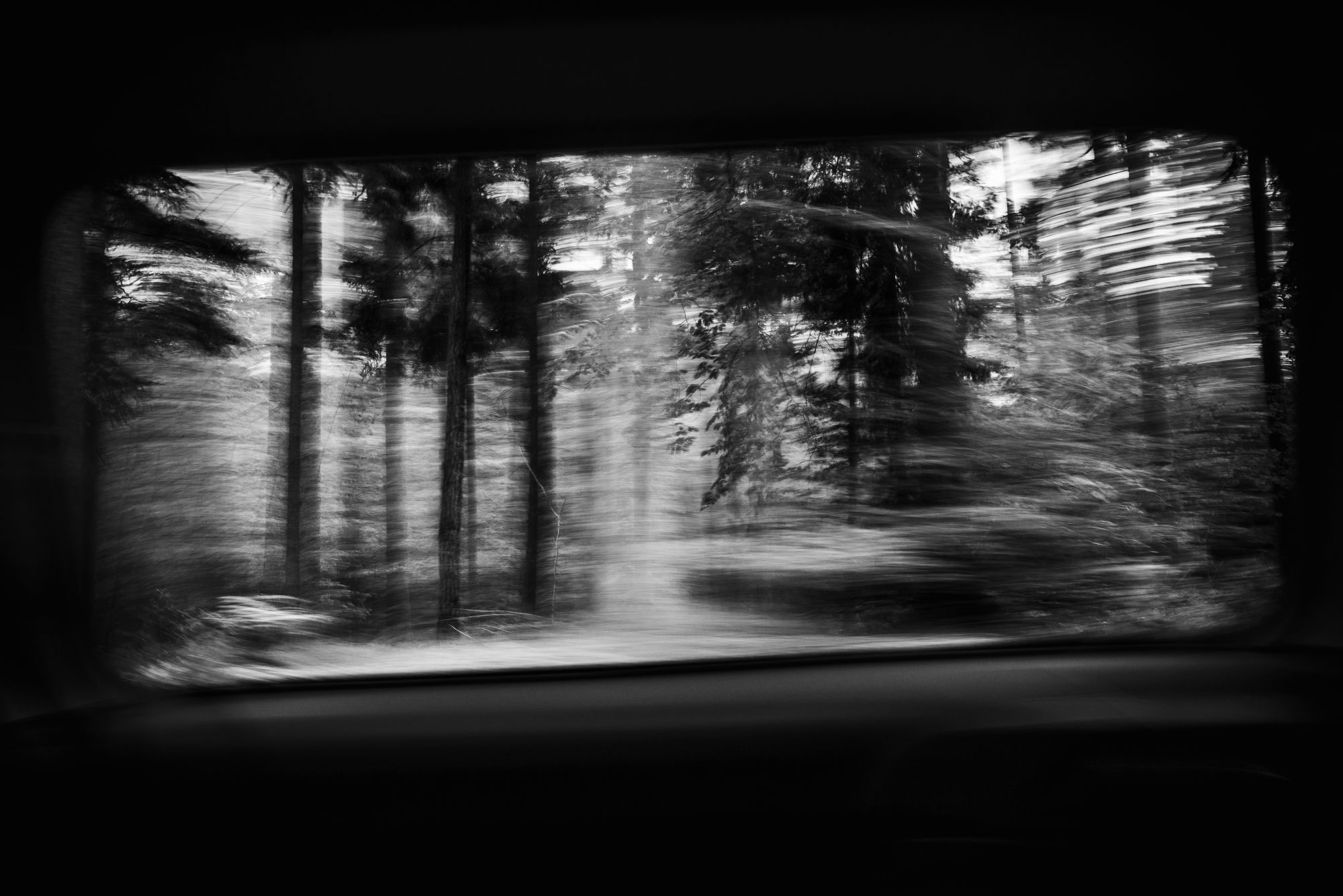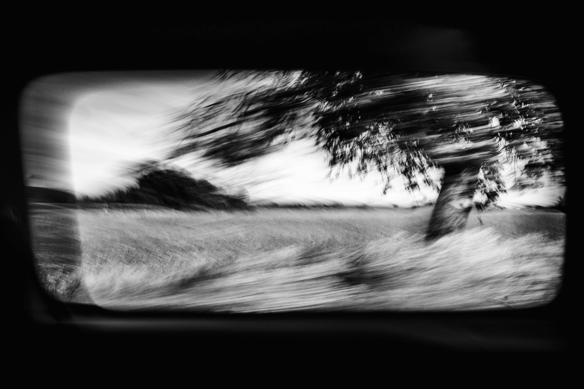 A subseries of the Rear Seat Diaries – one of many variations and developments within the project. It is created when the light is soft enough to allow longer exposure times. While the car is moving, I hold the camera in my hand and make minimal movements. These subtle shifts create a controlled blur – lines dissolve, structures flow.