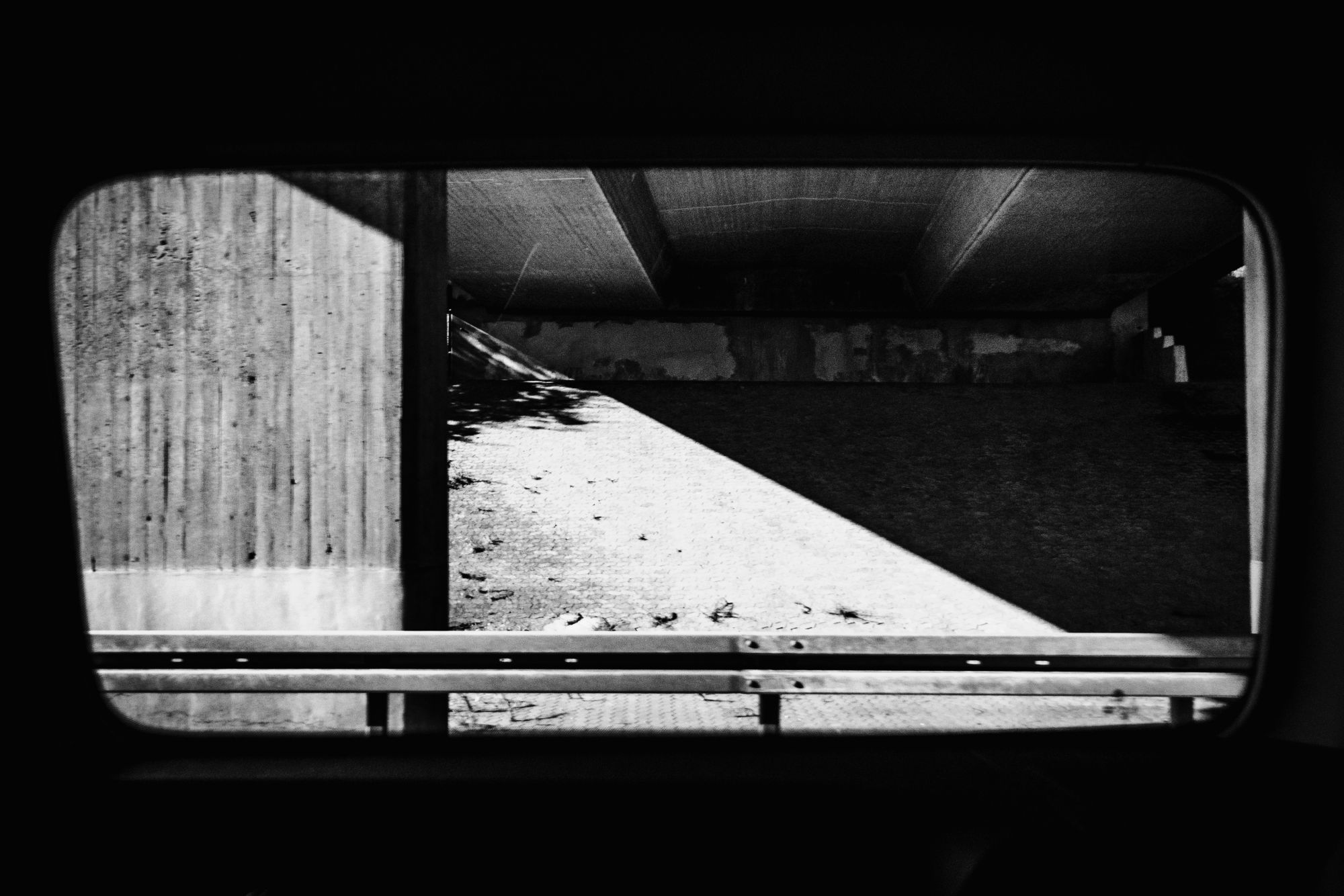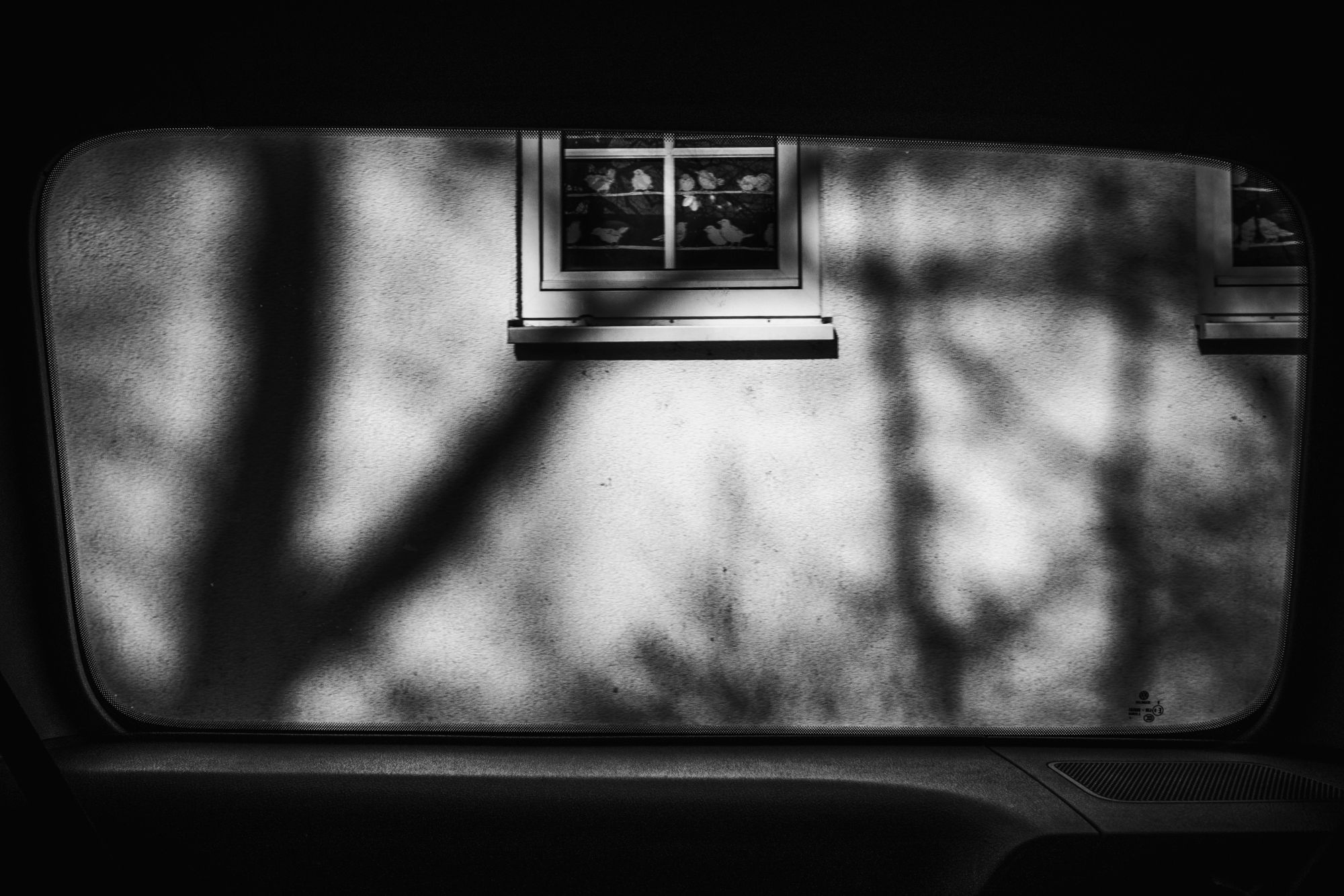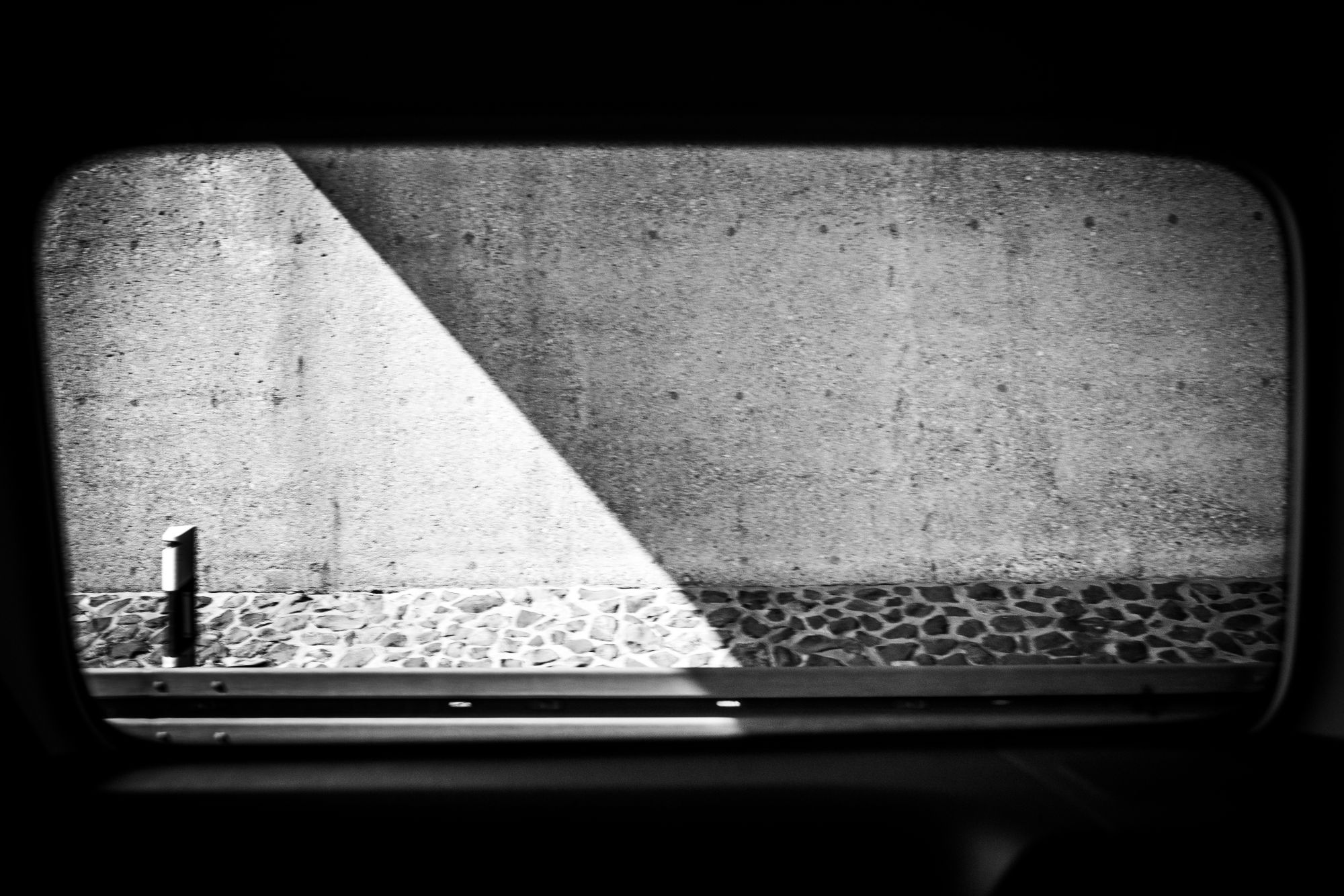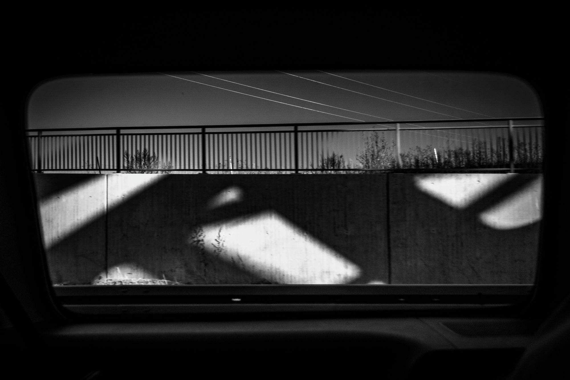 Light defines form, but shadow gives it meaning. In motion, both are inseparable — shifting, merging, erasing each other within fractions of a second. Through the car window, shadows become alive: they stretch across asphalt, climb facades, cut through reflections.